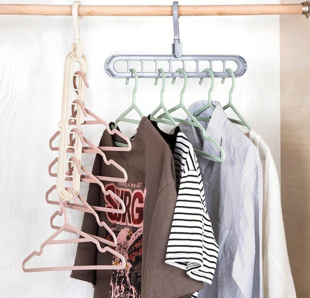 - VERSATILE DESIGN: Space-saving 9-hole hanger organiser perfect for maximising storage in small spaces