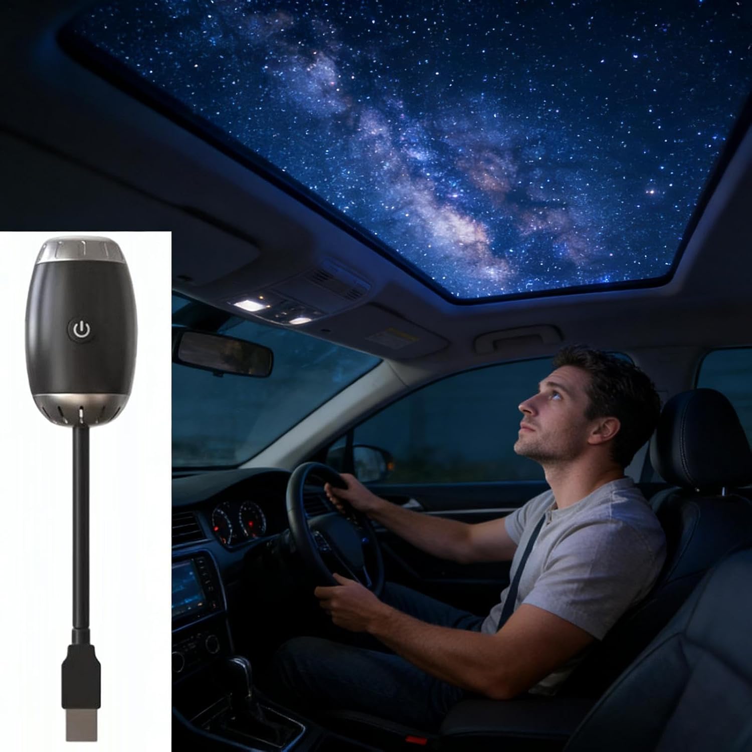 A Brand New Upgraded Usb-Powered Car Projector Light for Indoor Use, Featuring 360° Rotation. This Portable Starry Sky Lamp Serves As an Ambient Light for And Is Suitable for Ceilings, Bedrooms, Living Rooms, Rooms, Festivals